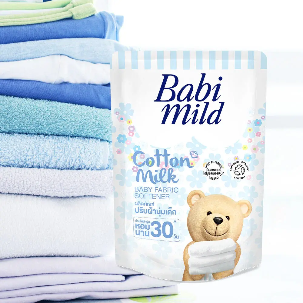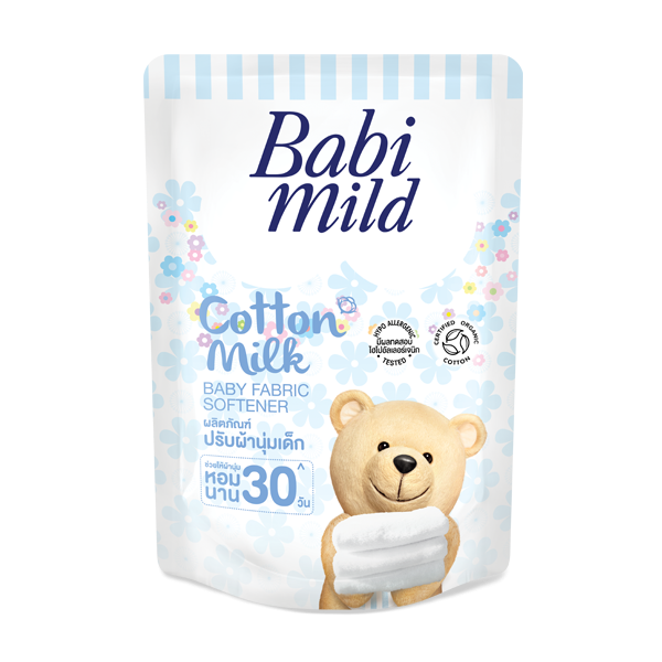Babi Mild Baby Fabric Softener Cotton Milk 1500ml Fabric softener product, Cotton Milk scent, combining 2 values of softness and gentleness, making baby's fabric soft and pleasant to the touch, like a mother's warm embrace. With the relaxing scent of Floral Blossom along with 2 types of extracts: Cotton Extract that helps make fabric fibers fluffy and soft to the touch, comfortable to wear, and Milk Protein that helps add softness to fabric. With gentleness that has been tested Dermatolo+AB20gical Test that does not irritate the skin.