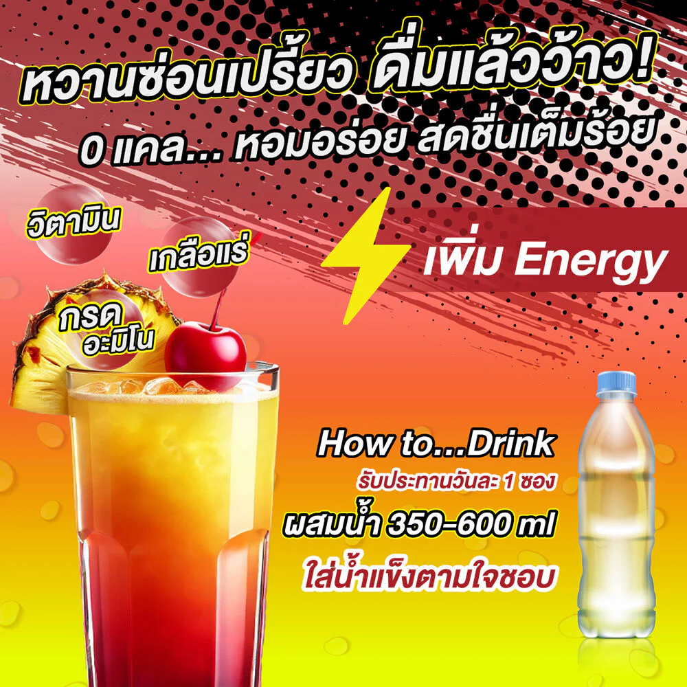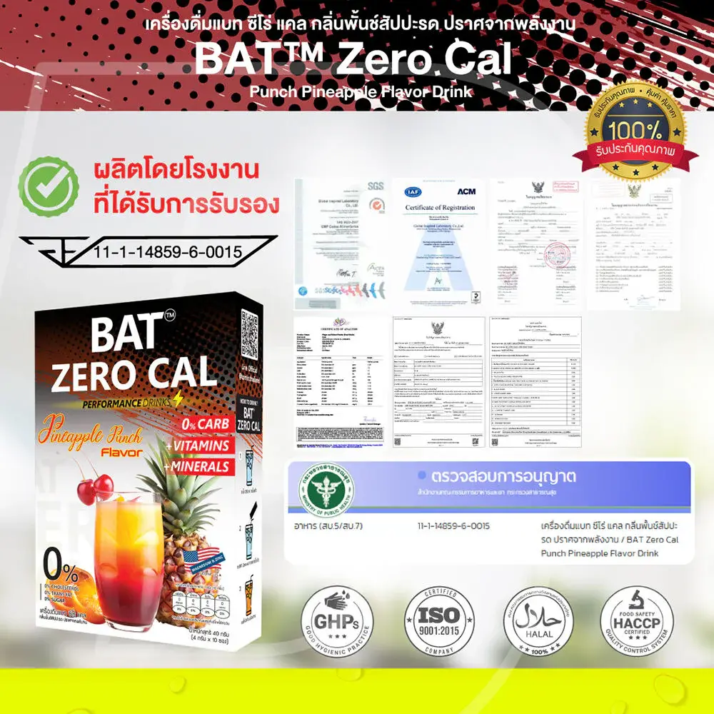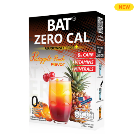 BAT Zero Cal Punch Pineapple Flavor Drink [4g x 10 Sachets] Vitamin and mineral drink, formulated for athletes, contains Vitamin C and minerals (Vitamin and Mineral), combined with important extracts such as Magnesium, Niacin and Zinc. Pineapple punch flavor, delicious, refreshing, free of sugar, cholesterol, trans fat and calories.