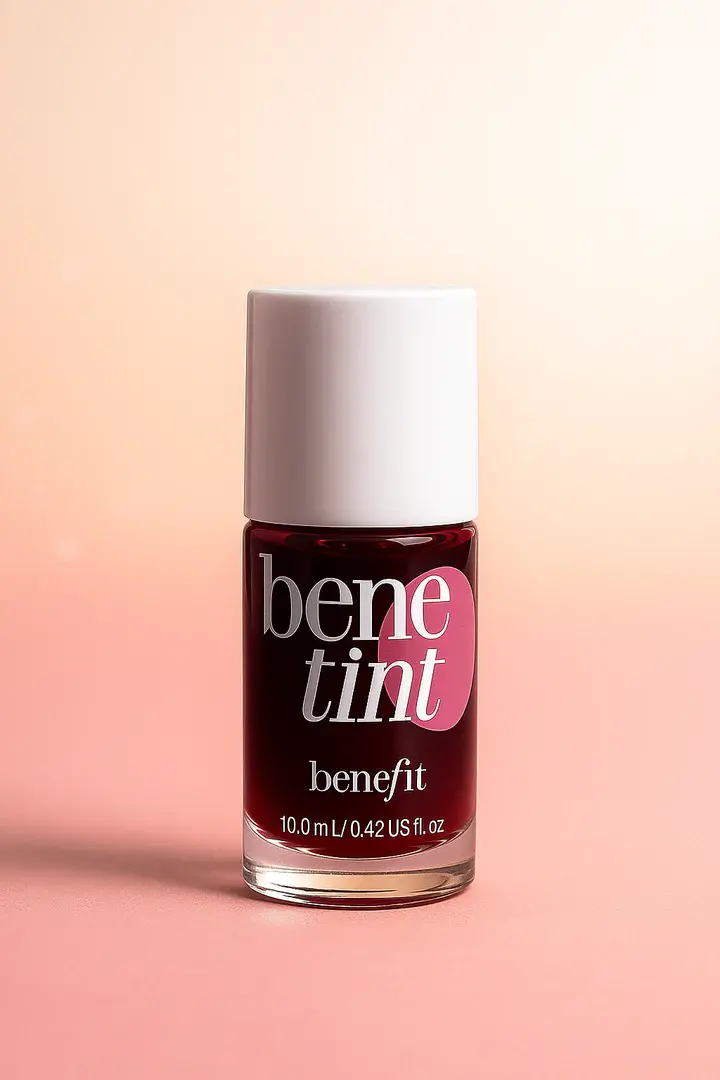 apply Benefit Benetint Rose-Tinted Lip & Cheek Stain All over the lips or lightly touch the cheeks.