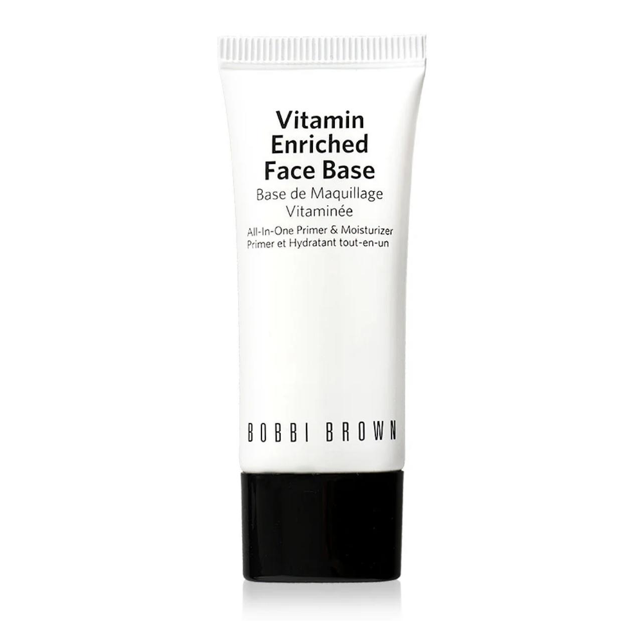 Bobbi Brown Vitamin Enriched Face Base 15ml: A pre-makeup base that combines moisturizer and primer in one. It hydrates with shea butter, vitamins B, C, and E, and is scented with grapefruit and geranium. It's fragrance-free and oil-free, so it can be used both morning and night without clogging pores.