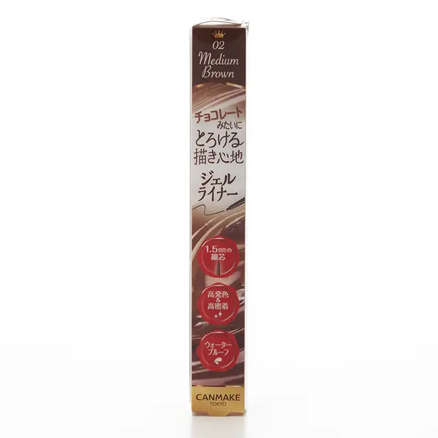 Canmake Creamy Touch Liner 0.10g #02 Medium Brownis a gel eyeliner that has captured the hearts of many. With a wide range of shades to choose from, you can easily mix and match any look with just your fingertips. Its unique, tapered tip makes it easy to apply, even for beginners. The intense color lasts all day, and it's waterproof, rainproof, sweatproof, and tearproof, even when rubbed.