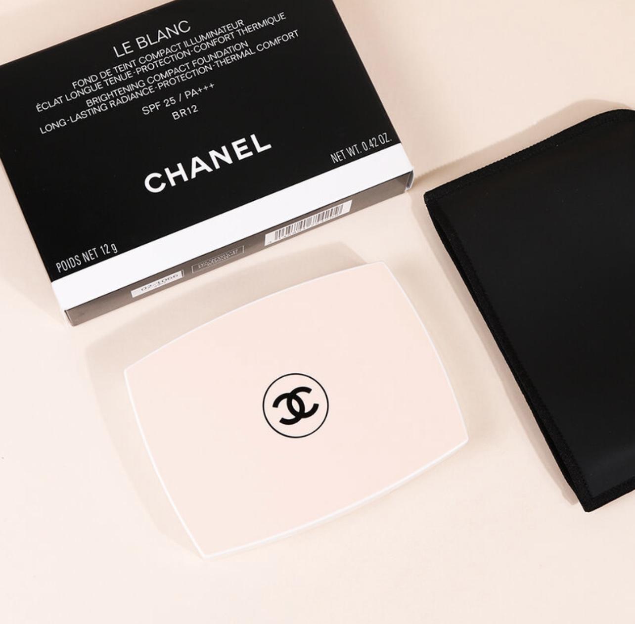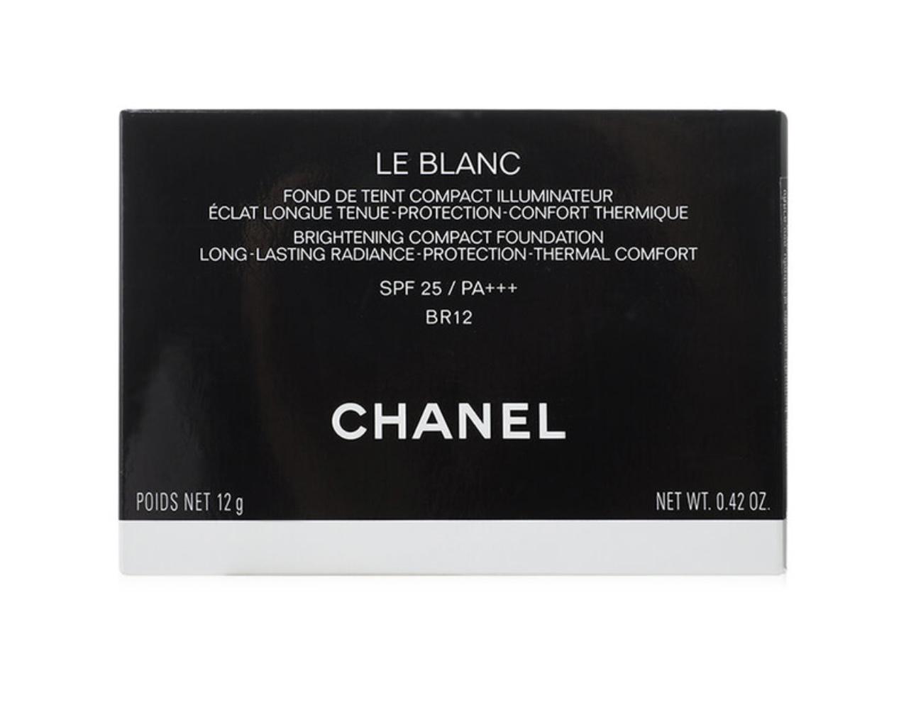 Introducing the new Chanel Le Blanc Brightening Compact Foundation 12g #BR12. This foundation powder is formulated with a new, more effective formula. Its comfortable texture lasts all day, blurring imperfections for a smooth, radiant complexion. Formulated with Gardenia Flower Extract, Squalane, and Hyaluronic Acid, it strengthens the skin's barrier and protects against UV rays and pollution with SPF25. The innovative complex also dissipates heat, preventing irritation from temperature changes. It delivers a lightweight, flawless, glowing finish.