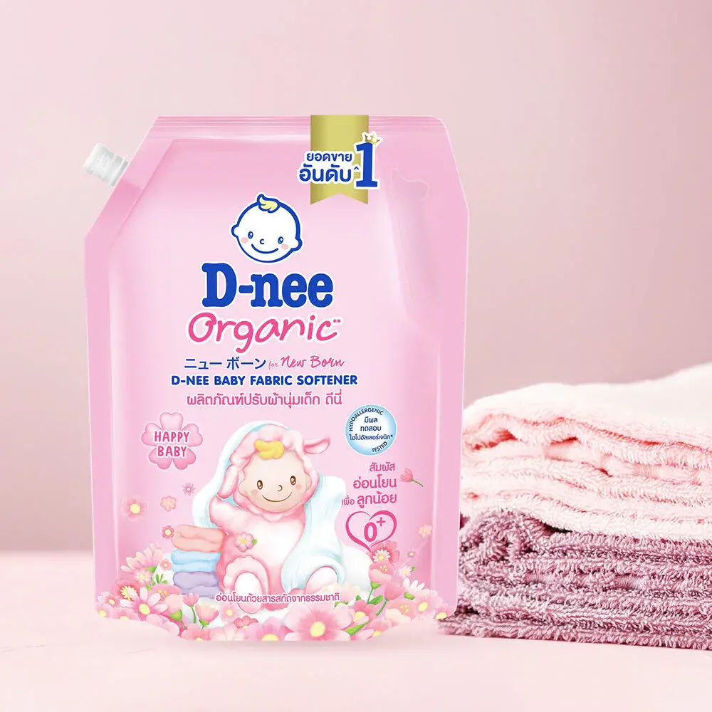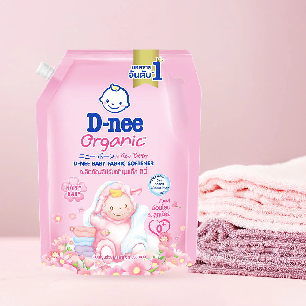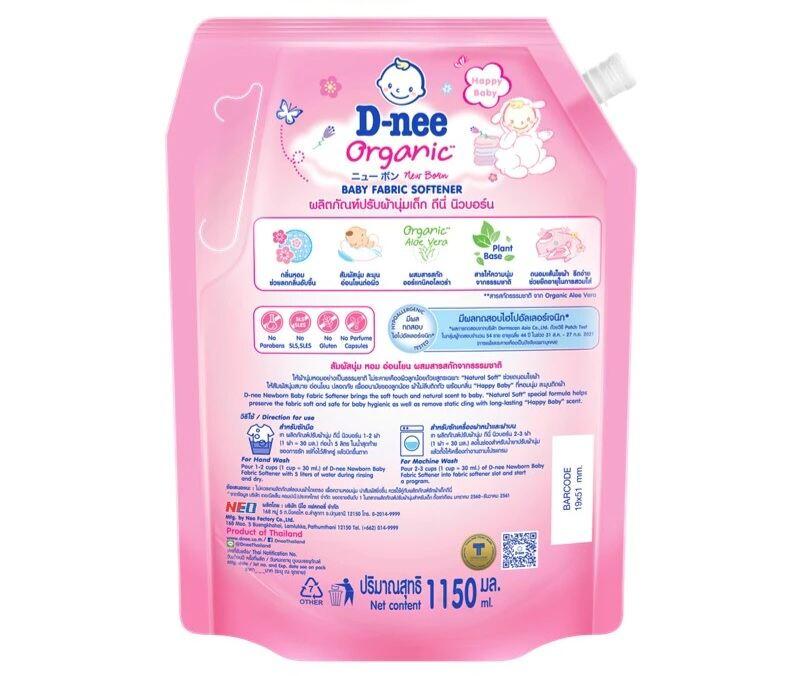 D-nee Baby Fabric Softener Organic Happy Baby [Pink] 1100ml Baby fabric softener, gives fabric a natural soft scent, does not irritate baby's skin with the special Natural Soft formula, helps preserve fabric fibers, provides a soft, comfortable touch, gentle, safe for baby's health, fabric does not cling to the body, with the Happy Baby scent that is soft and gentle on the fabric.