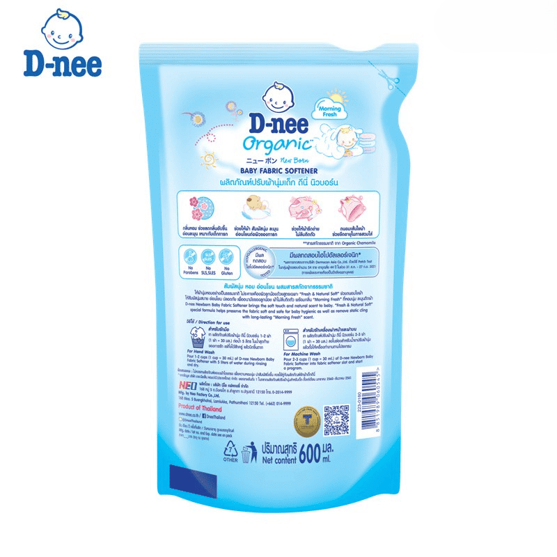 D-nee baby fabric softener gives fabric a natural soft scent, does not irritate baby's skin, with a Morning Fresh scent that is soft and gentle on fabric.