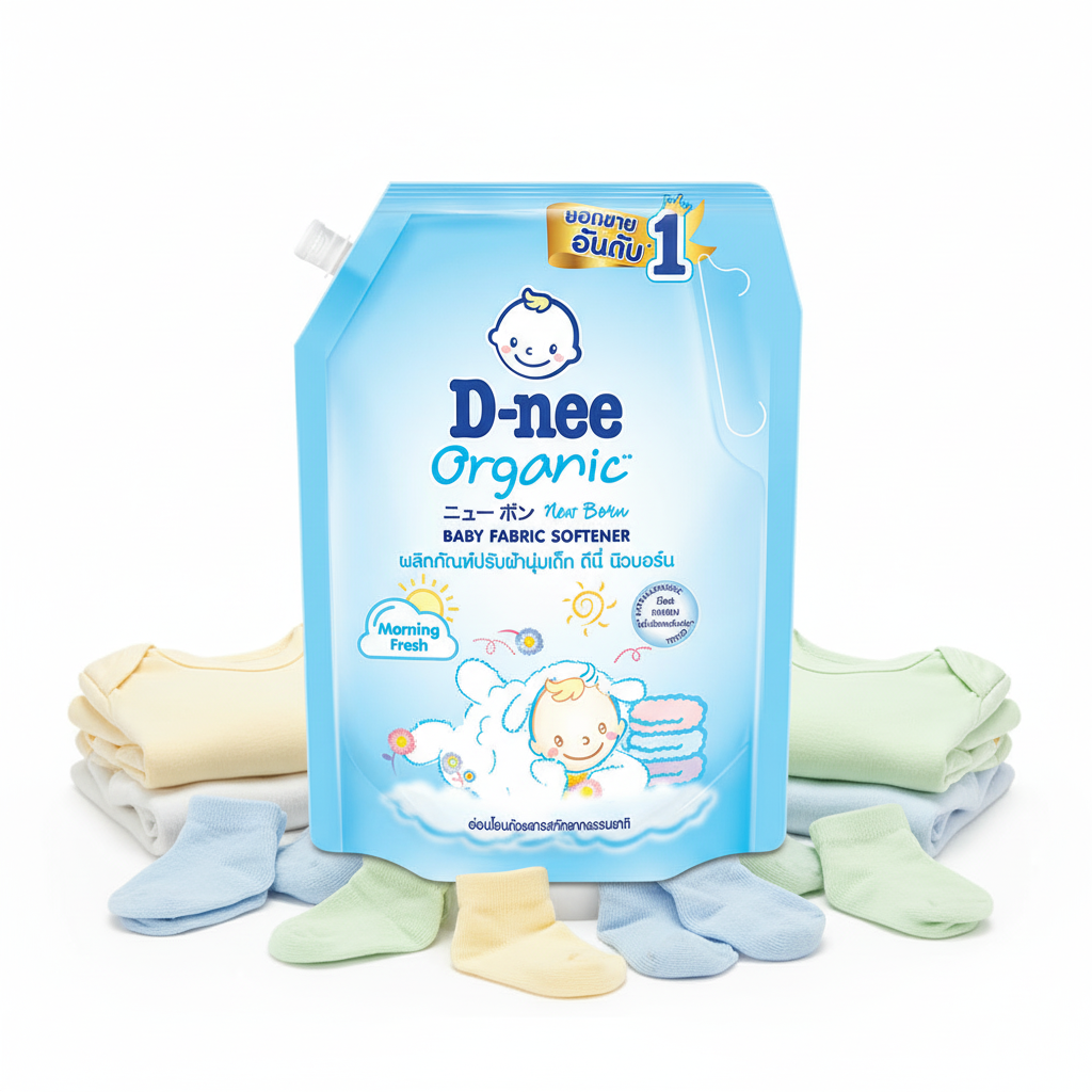 D-nee Baby Fabric Softener Organic Morning Fresh [Blue] 1100ml Baby fabric softener, gives fabrics a naturally soft and fragrant scent, does not irritate baby's skin with the special formula Fresh & Natural Soft helps preserve fabric fibers, giving a soft, comfortable touch, gentle, safe for baby's health, fabrics do not cling to the body, with the scent of Morning Fresh that is soft and gentle on fabrics.