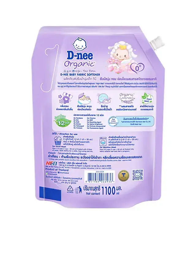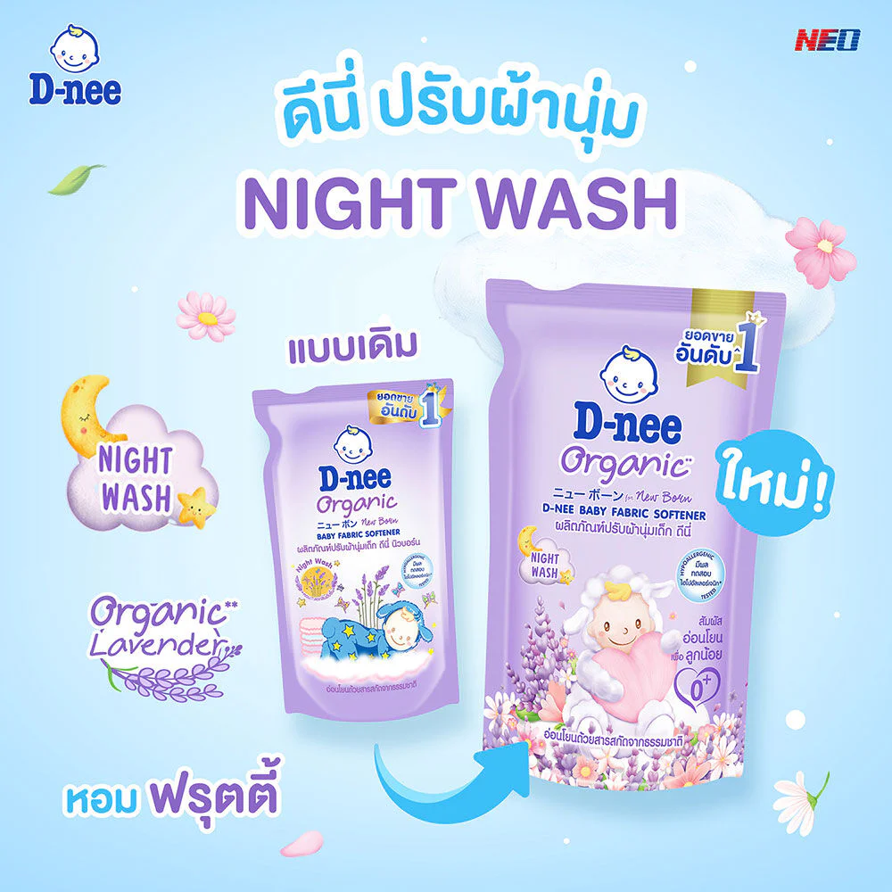 D-nee Baby Fabric Softener Organic Night Wash [Purple] 530ml Baby fabric softener helps preserve fibers, providing a soft, comfortable touch, gentle and does not cling to the body. Night Wash scent is relaxing and helps your baby sleep well all night long.