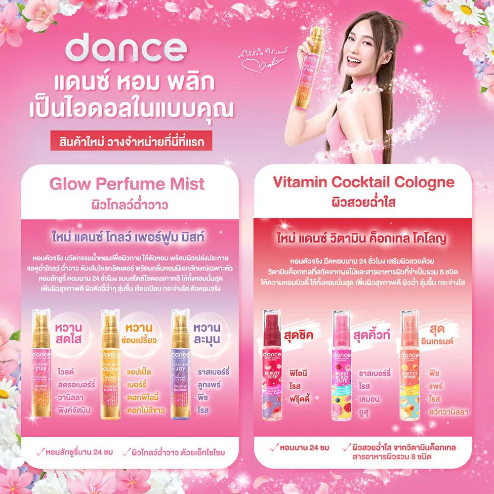 DANCE Vitamin Cocktail Cologne Berry Berry Cute 100ml Cologne spray with a long-lasting raspberry scent, combined with a vitamin cocktail extracted from fruits and 8 essential skin nutrients, helps enhance beautiful, healthy, hydrated skin, confident all day long.