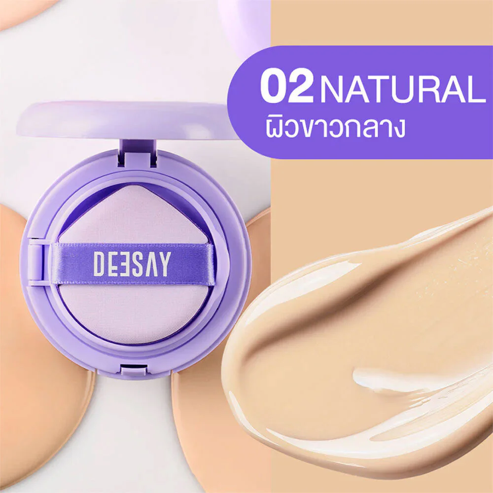 Deesay Feather Soft Blurring Cushion SPF50+ PA+++ 13g #02 Natural Lightweight cushion that feels comfortable on the skin, giving a Semi-Glow look, helping to blur pores, concealing wrinkles to look smooth and even, combining Niacinamide and Adenosine to help reduce dark spots, redness to look faded, and protecting the skin from UVA/UVB rays, giving smooth, beautiful, bright skin.