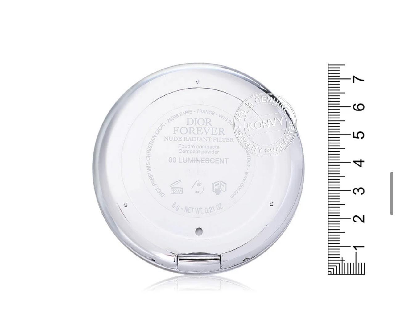 Dior Forever Nude Radiant Filter 6g #00 Luminescent Pressed Powder for setting skin. This translucent finish creates a radiant glow with fine pearlescent pigments. It sets, blurs, and enhances radiance, helping foundation last longer. Skin is hydrated with a formula infused with hyaluronic acid.