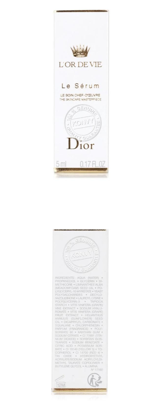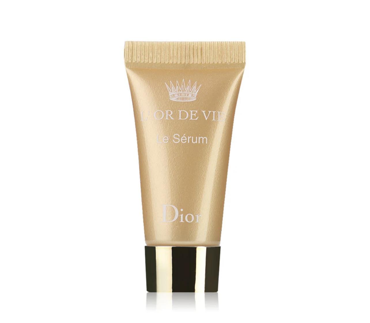 Dior L'or De Vie Le Serum 5ml: This revitalizing serum revitalizes skin cells with its smooth, fine texture and fast absorption. Enriched with Dior's highest concentration of active ingredients, it reduces the appearance of wrinkles, strengthens skin, and reveals smooth, firm, and radiant skin.