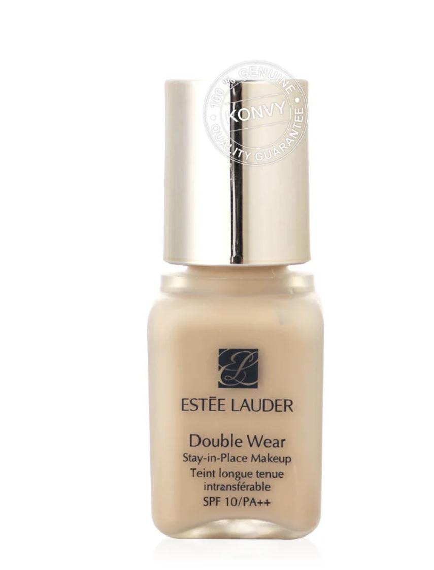 Apply Estee Lauder Double Wear Stay-In-Place Makeup SPF 10/PA++ to your face. Using your fingers, a sponge, or a makeup brush, blend the foundation into your skin for a smooth, even finish.