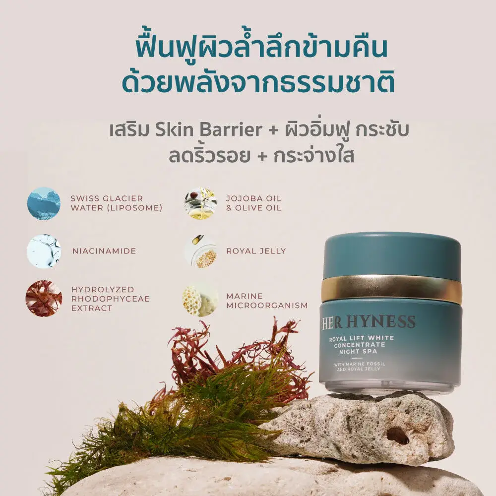 HER HYNESS Royal Lift White Concentrate Night Spa 30ml The first ever Sleeping Mask Royal Jelly and marine fossils (microorganisms from the sea 3,500 meters deep in a coolness of 1.5 degrees) to help make the skin firm, tight, and firm, increasing the brightness and radiance of the skin Ready to provide long-lasting moisture