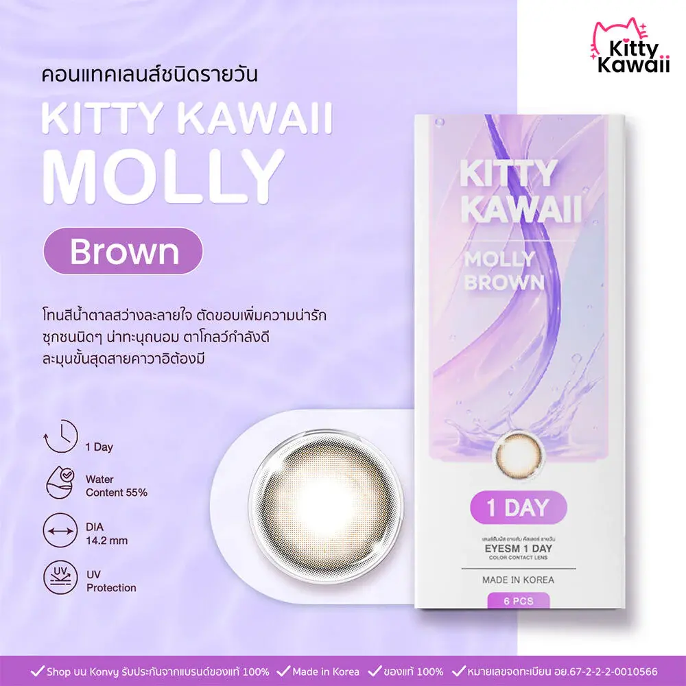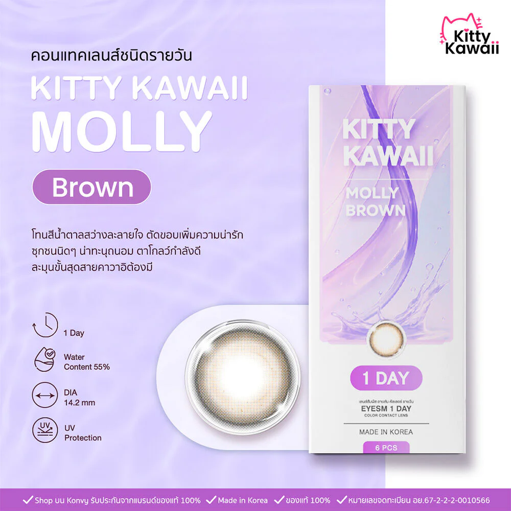 Kitty Kawaii Oneday Molly Brown [3 Pairs] #-3.50 Daily contact lenses, Molly model, light brown, edge-cut lenses, make the eyes look soft and adorable, giving a cute and playful look.
