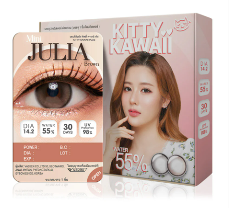 Kitty Kawaii Plus Contact Lens Mini Julia Brown [1 Pair] #-2.50 Monthly contact lenses, brown tone, dark to light layer, wear them and you will look like a luxurious young lady, sweet eyes, cute, expensive Soft Lens material, eye-friendly, lightweight, comfortable to wear, with UV Protection to protect eyes from UVA and UVB rays.