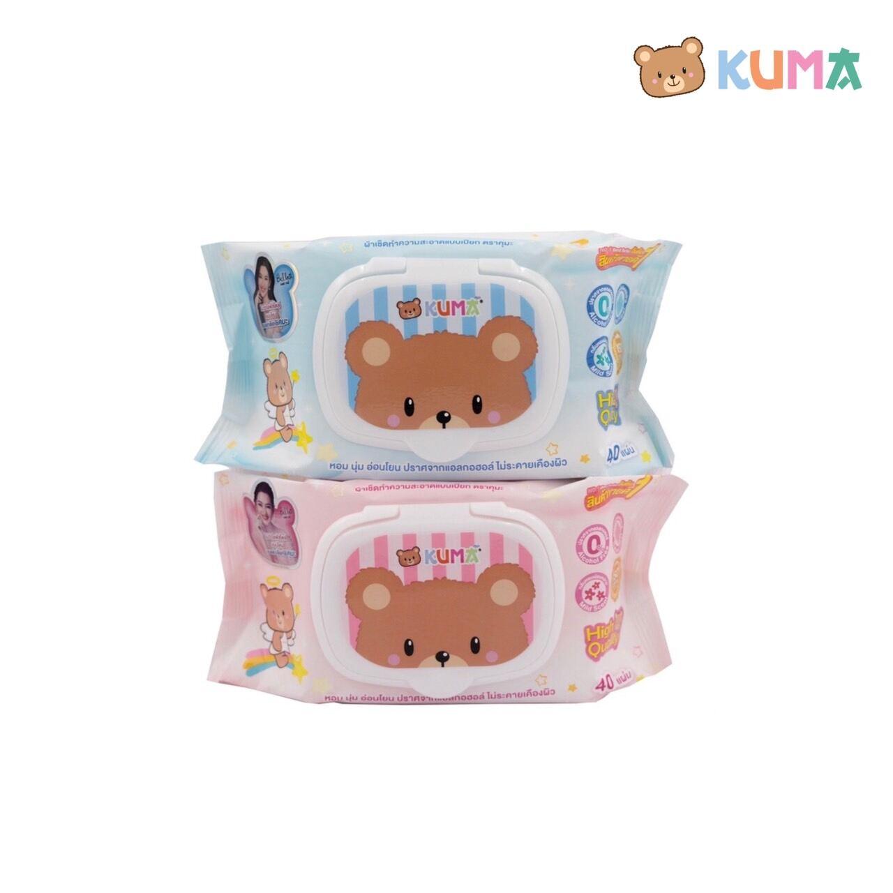 KUMA Wet Wipes with Lid 40 Sheets, Alcohol-Free Formula, Made from Natural Fibers, Cleans Thoroughly, Not Sticky, Has a Relaxing Scent, Gentle on Sensitive Skin, Even Baby's Skin, 2-Layer Lock Lid, Keeps Moisture for a Long Time Throughout Use
