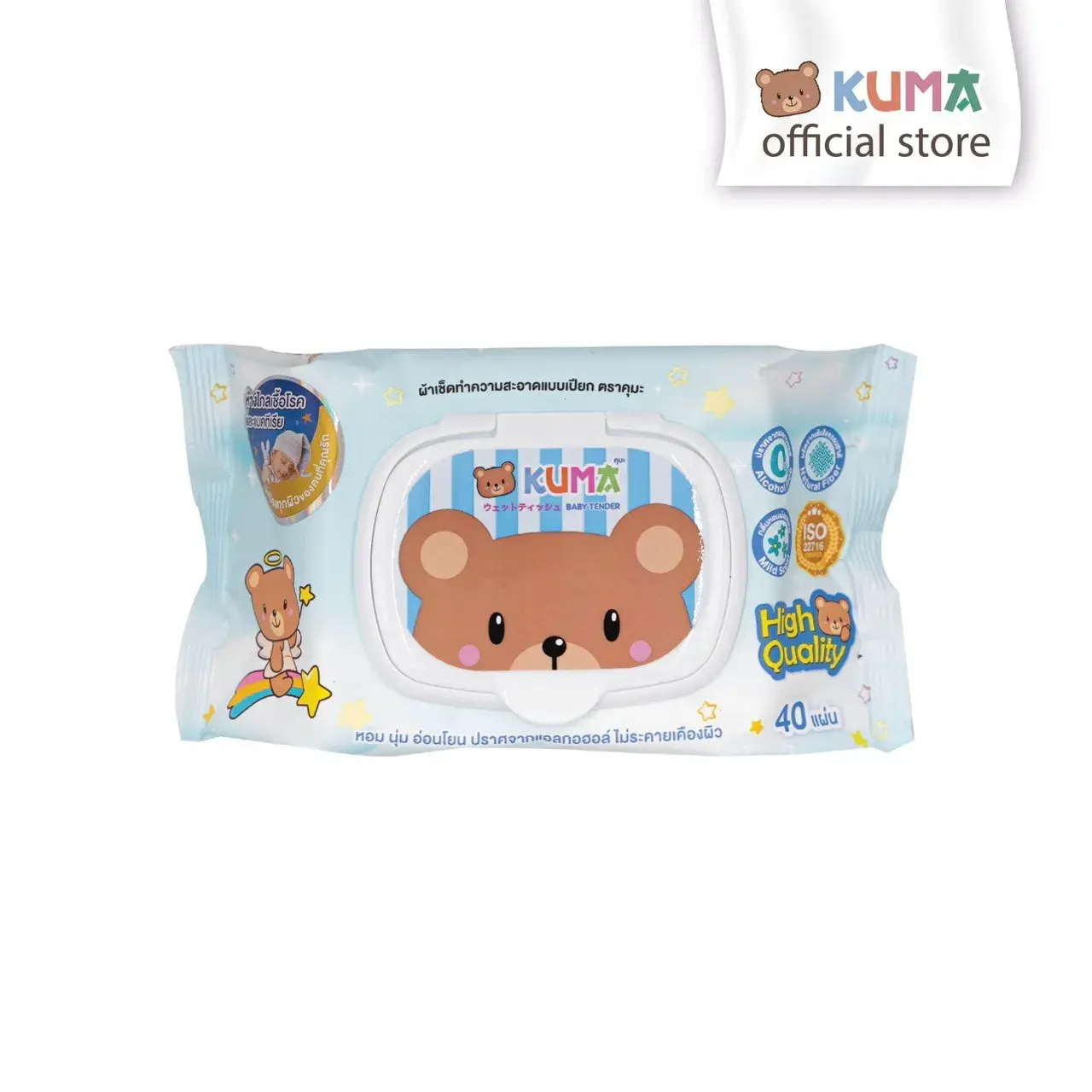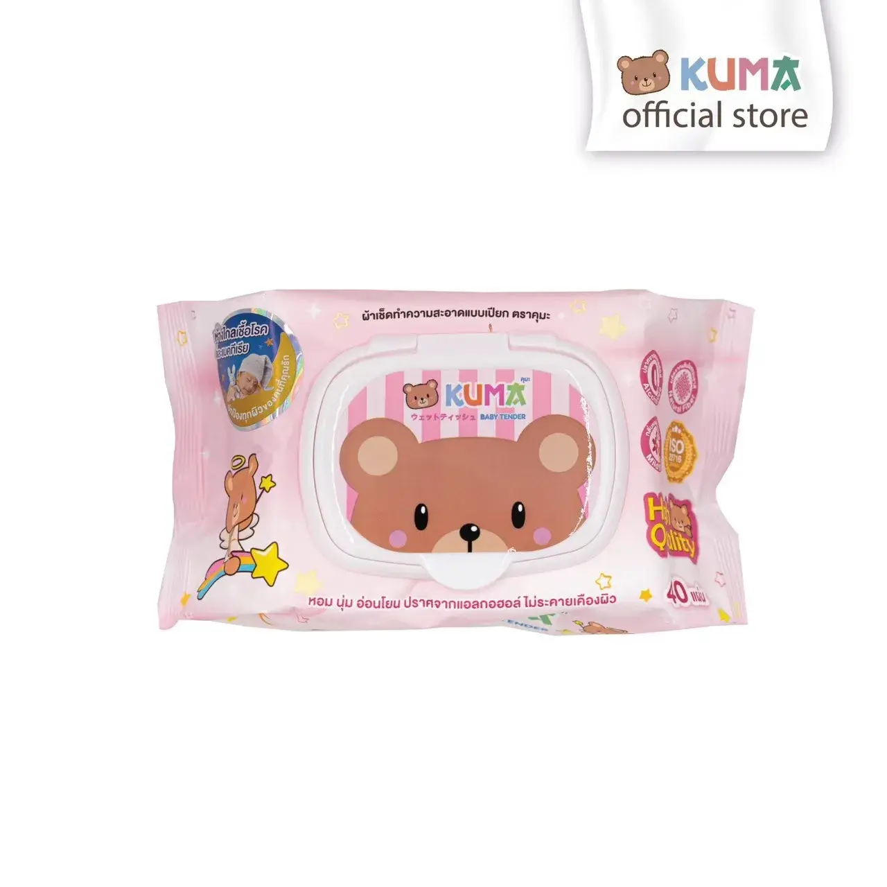 KUMA Gentle Skin Baby Tender Wet Wipes 40 Sheet [Random 1 Colors] Kuma wet tissue paper with a lid, 40 sheets, alcohol-free formula, made from natural fibers, cleans thoroughly, is not sticky, has a relaxing scent, is gentle on sensitive skin, even baby's skin, and has a 2-layer locking lid to retain moisture for a long time throughout use.