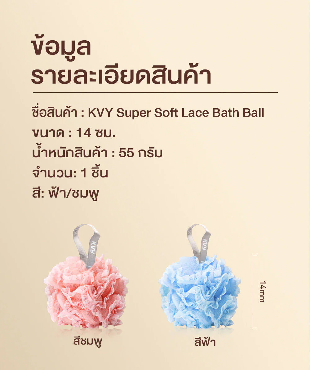 • A blue bath scrub from KVY, stands out with its lace pattern, soft to the touch, non-irritating to the skin, helps cleanse and scrub the body at the same time.