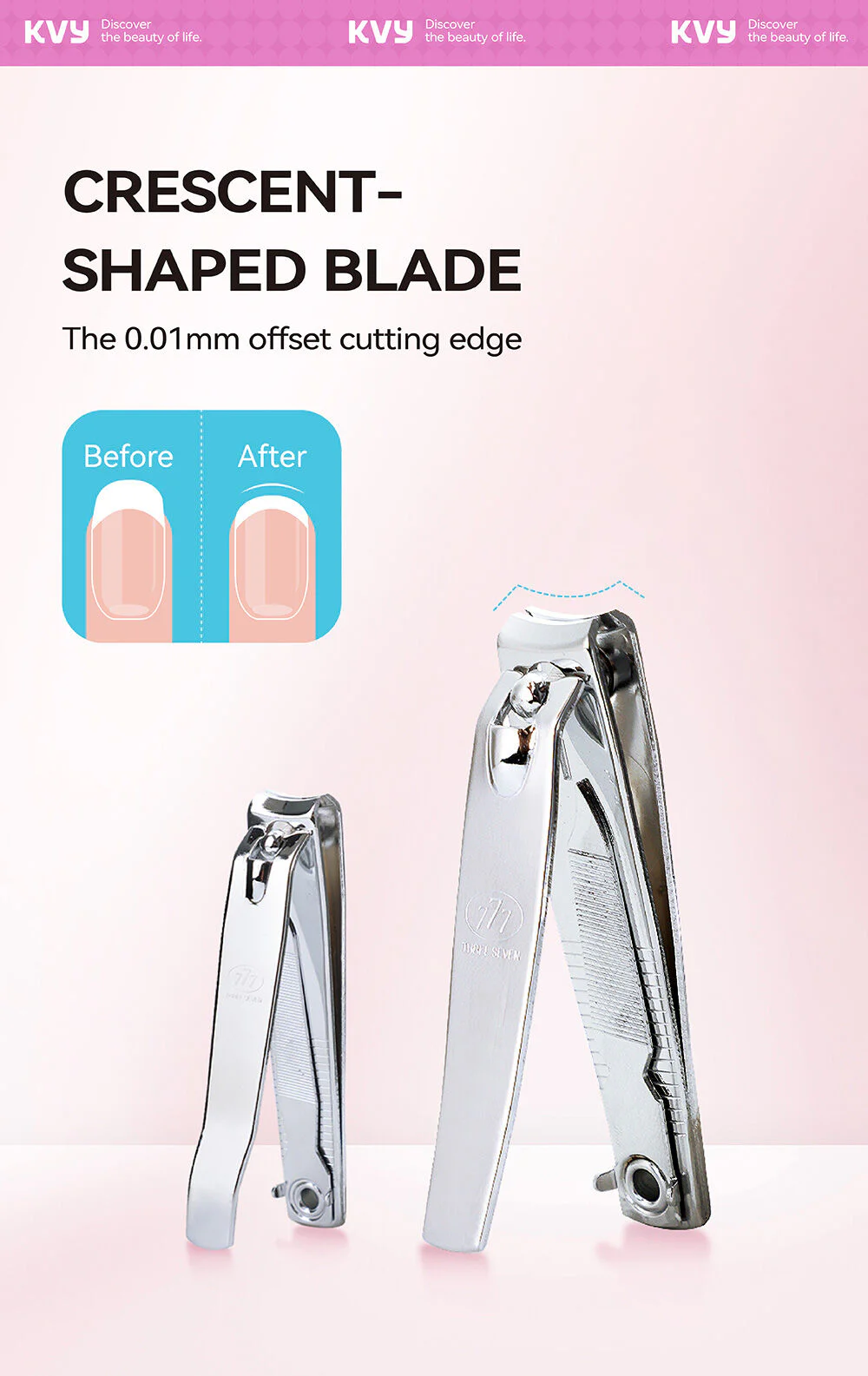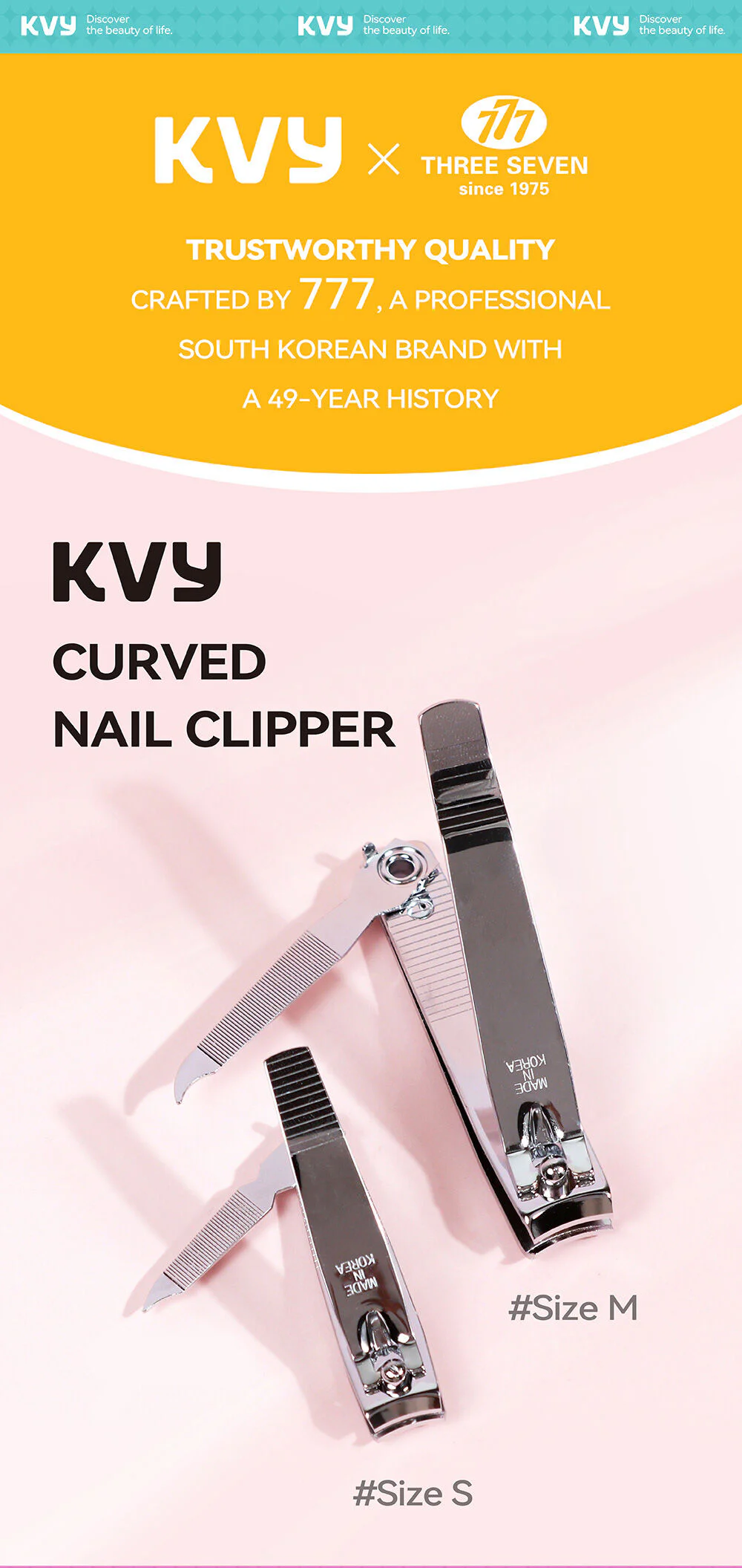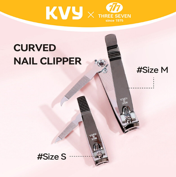 KVY X Three Seven 777 Curved Nail Clipper #M Curved nail scissors, size M, stand out with curved cutting edges to fit the shape of the fingers, making cutting easier. Comes with a built-in nail file