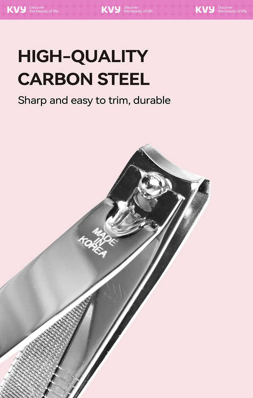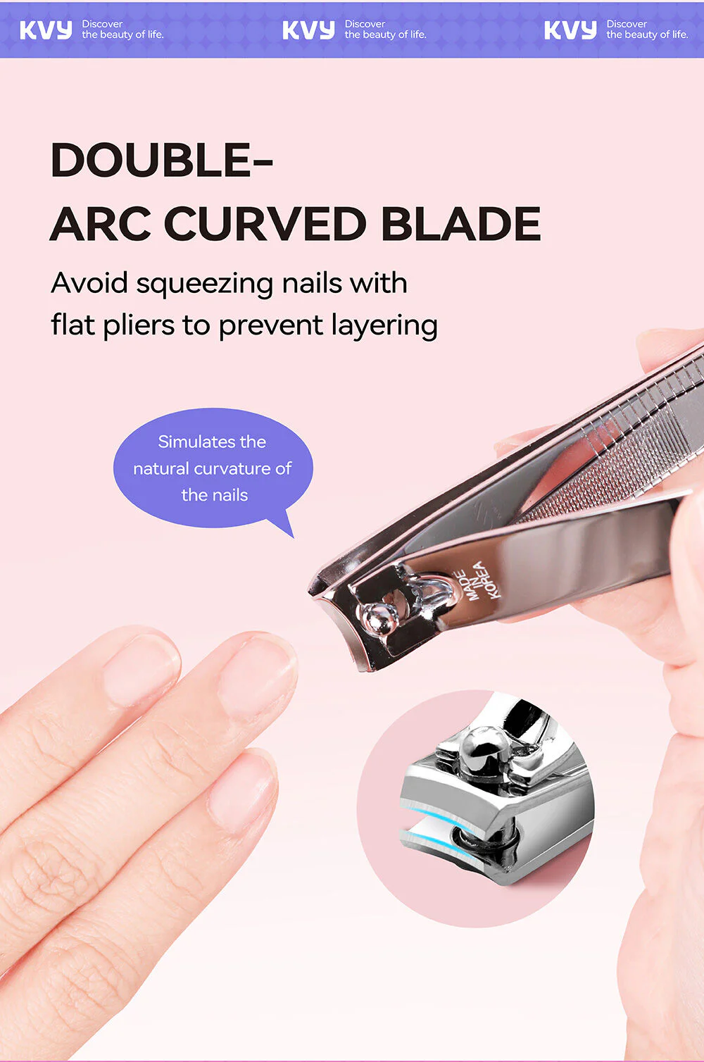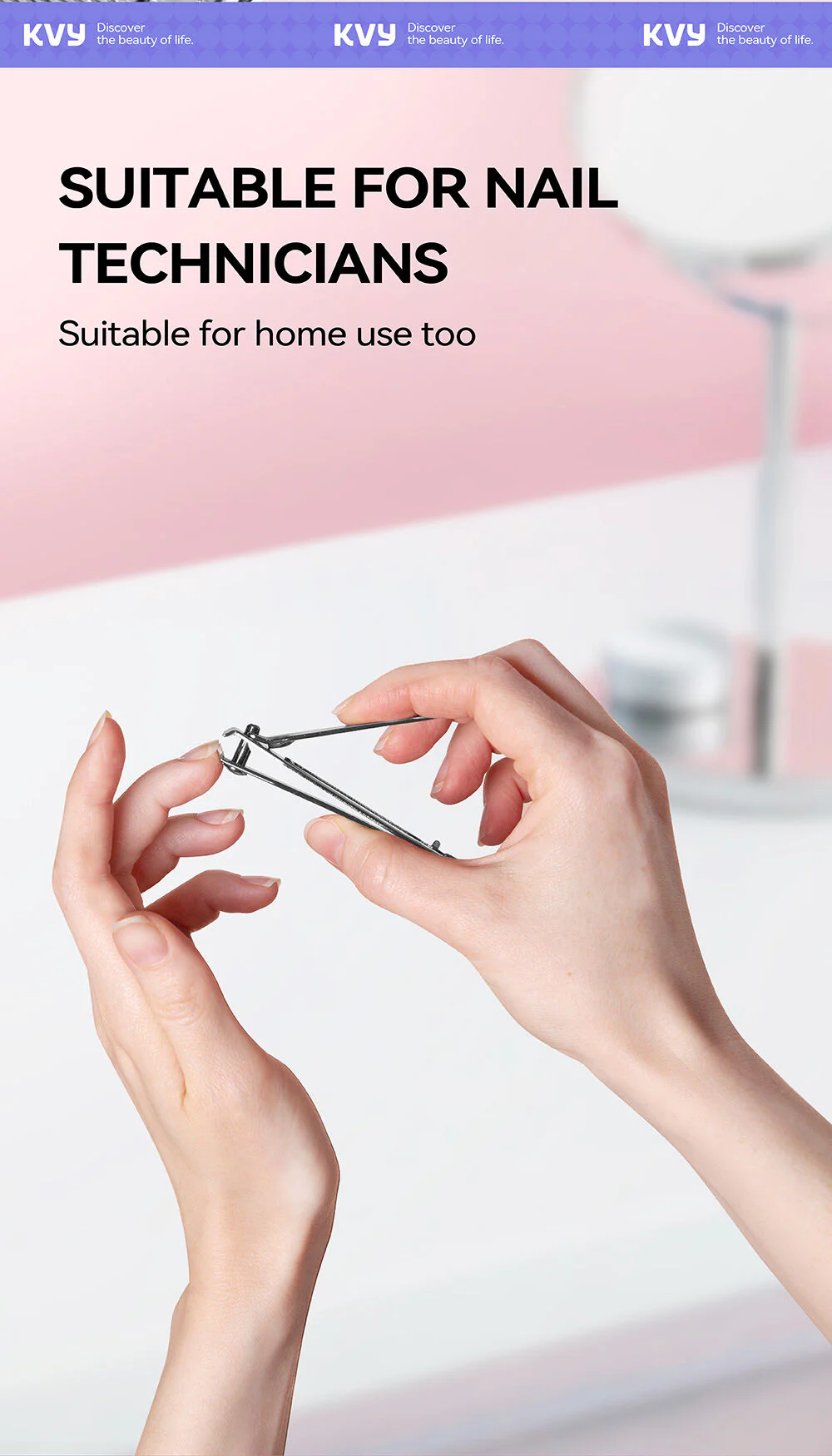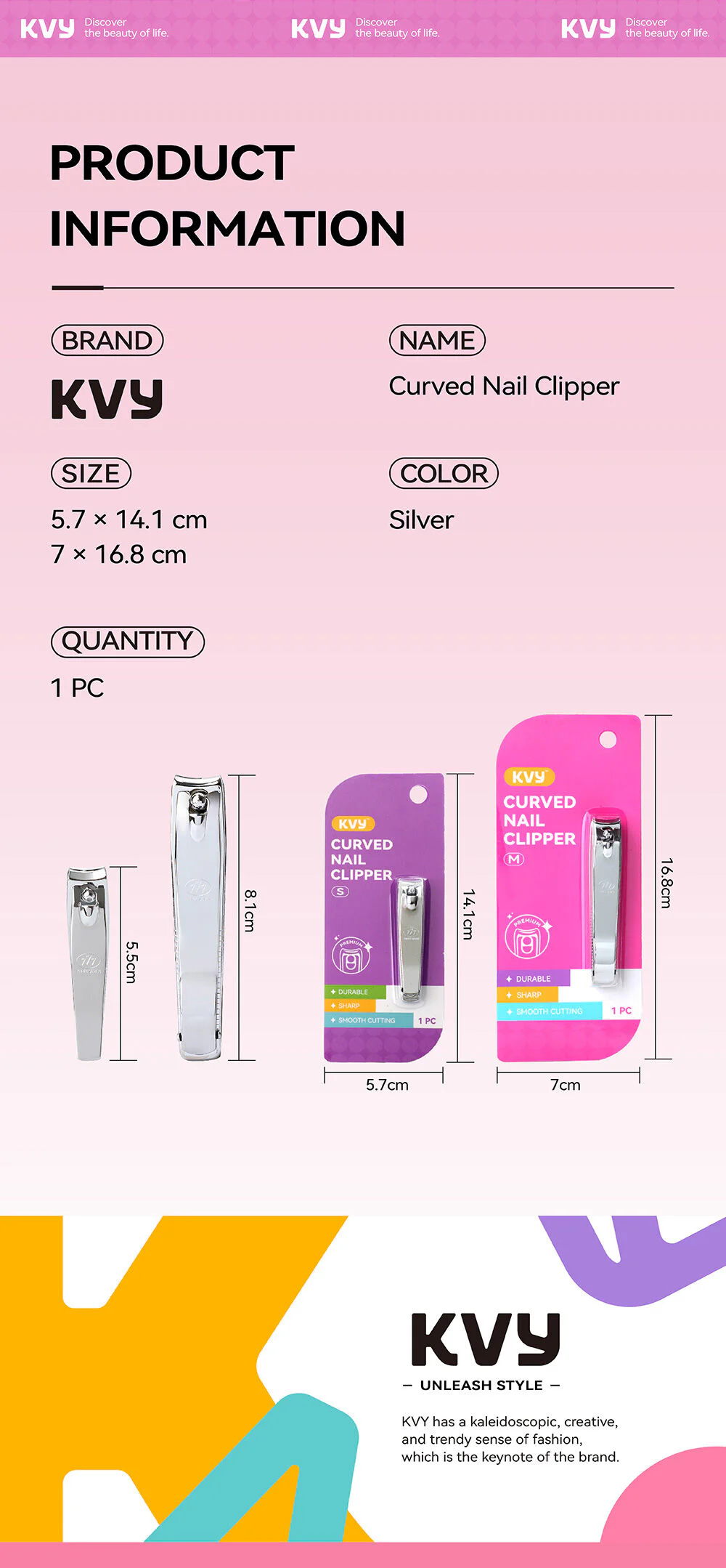Curved nail clipper, size M from KVY, stands out with a curved cutting angle that fits the shape of the fingers, making cutting easier. Comes with a built-in nail file.