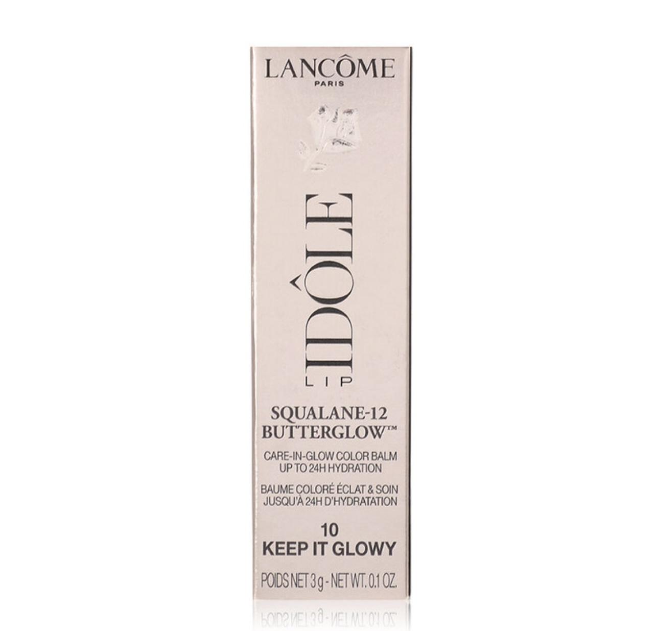 Lancome Lip Idole Butter Glow 3g #10 Keep It Glowy, a new, cutting-edge lipstick for ultimate shine. Formulated with 12% Squalane for deep hydration, this ultra-concentrated formula is made with 96% naturally derived ingredients, including Shea Butter and Jojoba Butter, Ceramide, and Biotech Rose Oil. Its buttery texture glides on smoothly and keeps lips moisturized, while delivering vibrant color.