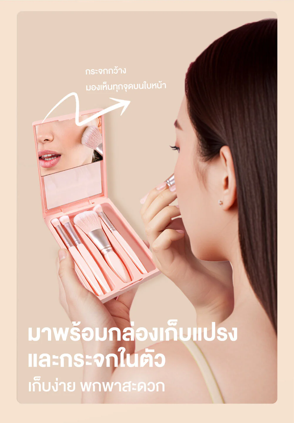 • Built-in mirror for convenient makeup application anytime, anywhere.