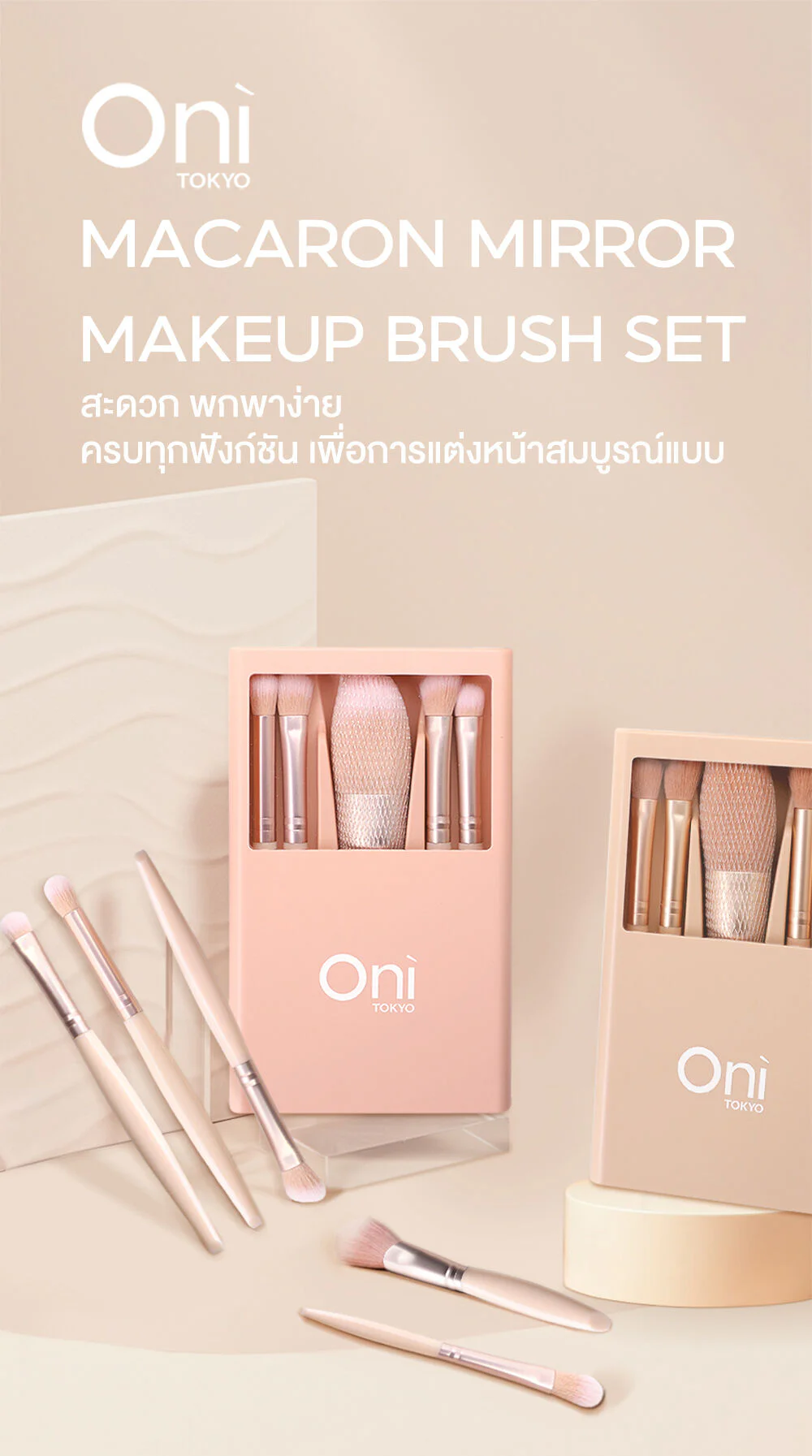 Oni Macaron Portable Makeup Brush Set With Mirror 5pcs
