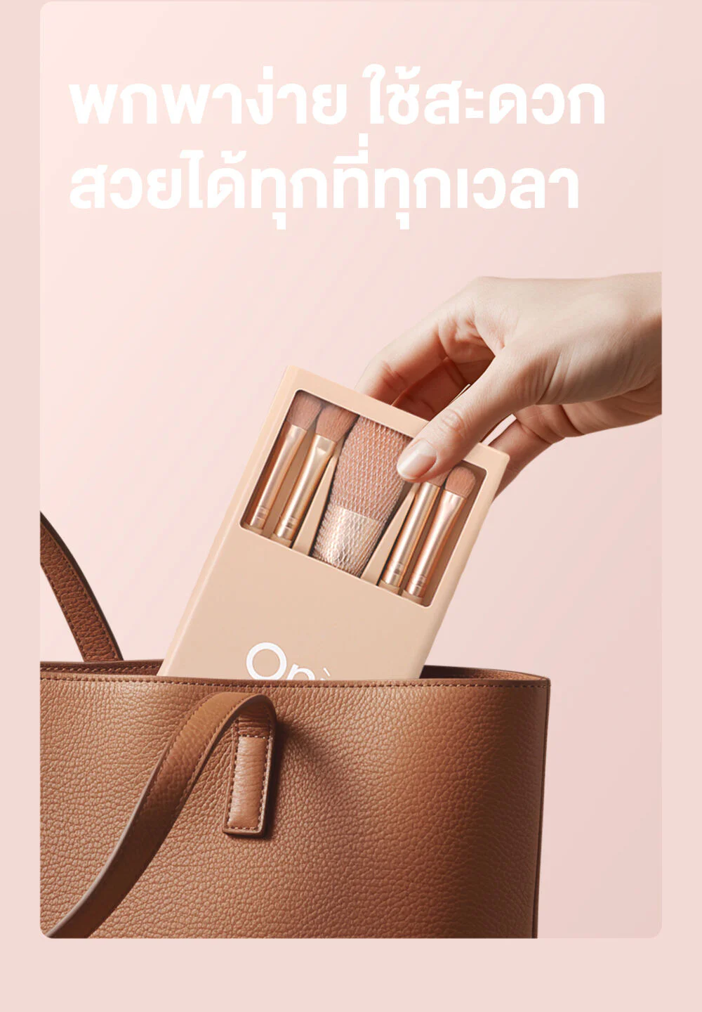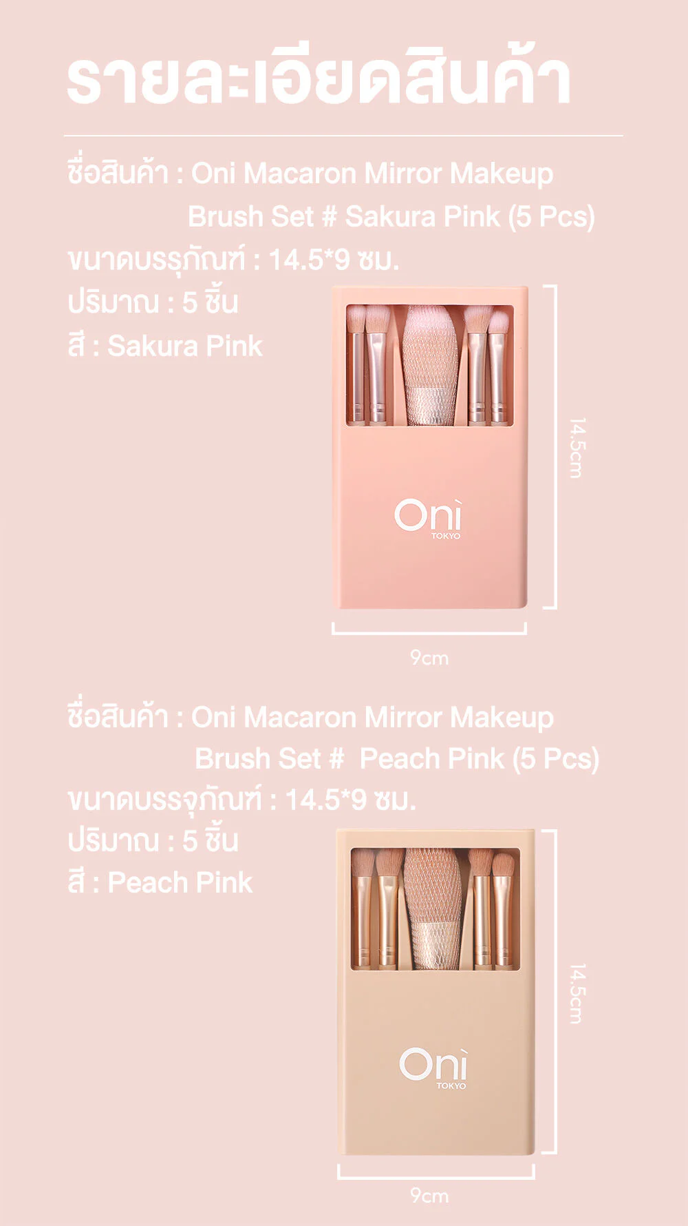 Oni Macaron Portable Makeup Brush Set With Mirror 5pcs #Peach Pink Create flawless makeup with this 5-piece peach pink makeup brush set. Synthetic bristles provide a soft touch and won't irritate the skin. Comes with a mirror, so you can beautify yourself anytime, anywhere.