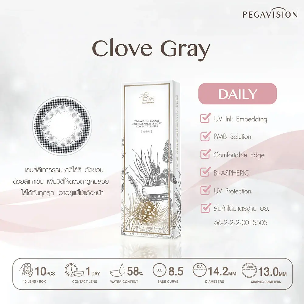 Pegavision Contact Lens Kaori Daily Clove Gray [5 Pairs] #-6.00 5 pairs of daily contact lenses, natural gray gradient lenses, dark gray edges, adding dimension to the eyes, making them look beautiful and sharp, suitable for all looks, even without makeup.