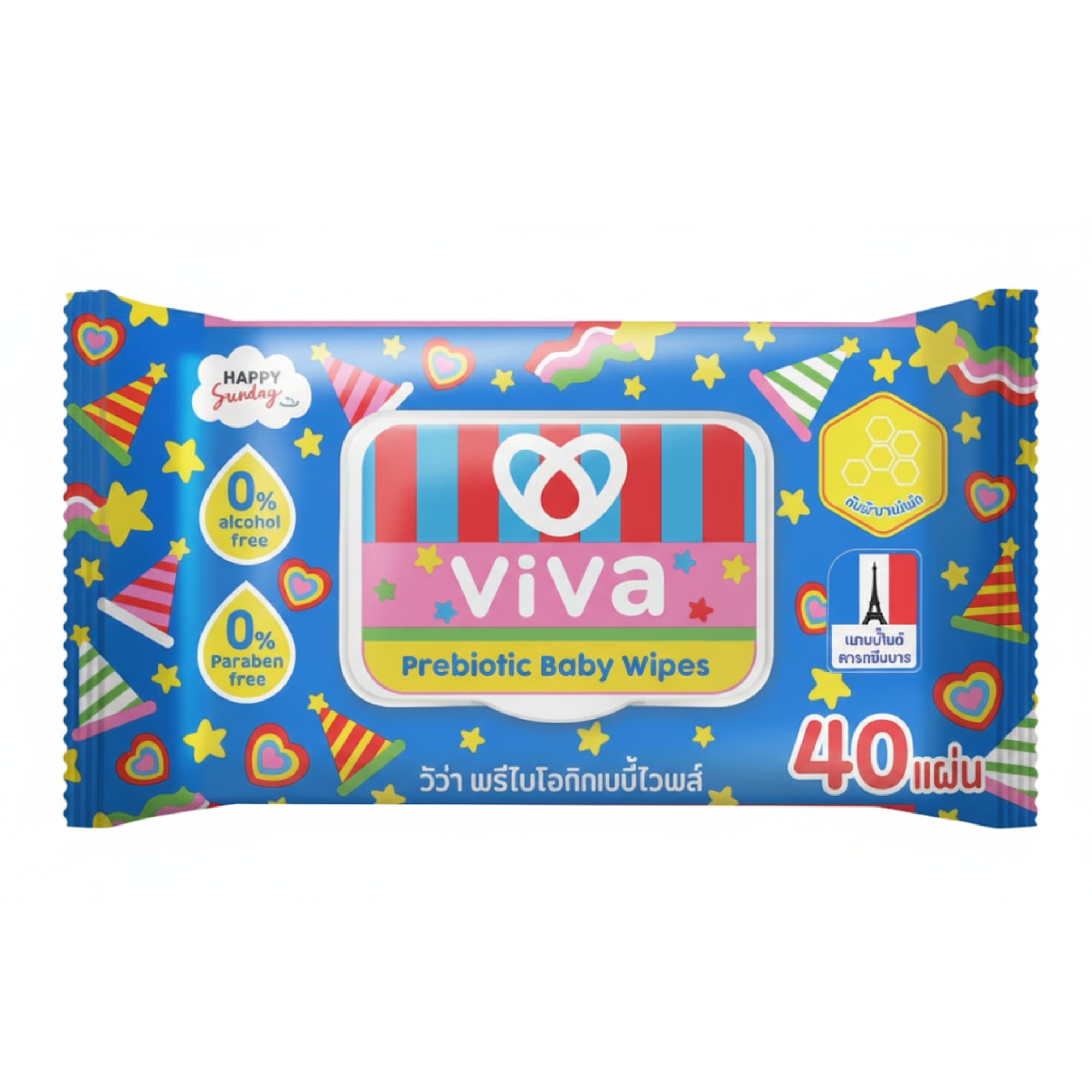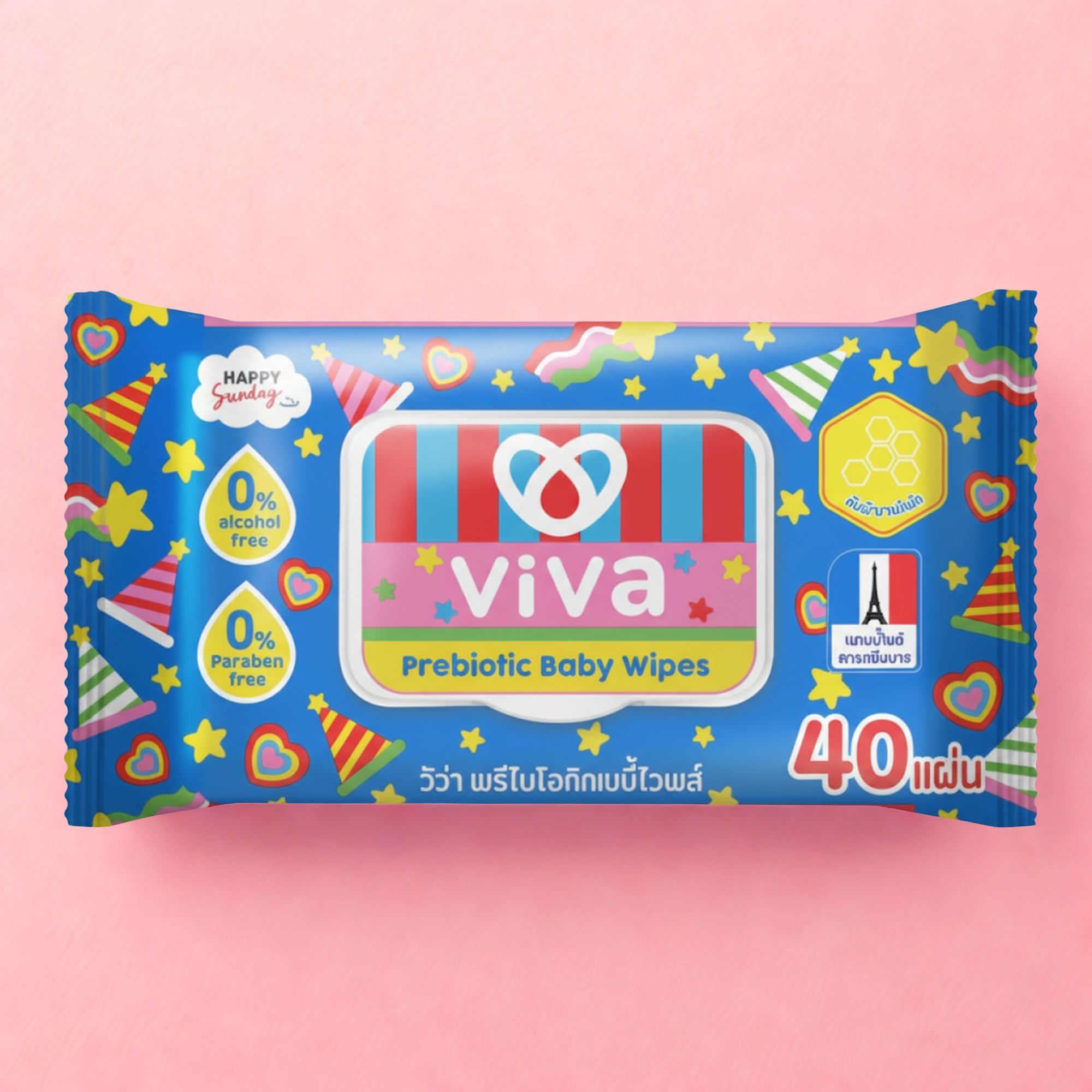 ViVa x Happy Sunday Prebiotic Baby Wipes 40 SheetsPrebiotic wet wipes, 40 sheets, contain prebiotics to help balance and strengthen the skin. Combined with French mineral water, it helps increase moisture and minerals to the skin. Cleanses while reducing irritation. Also free from parabens and alcohol.