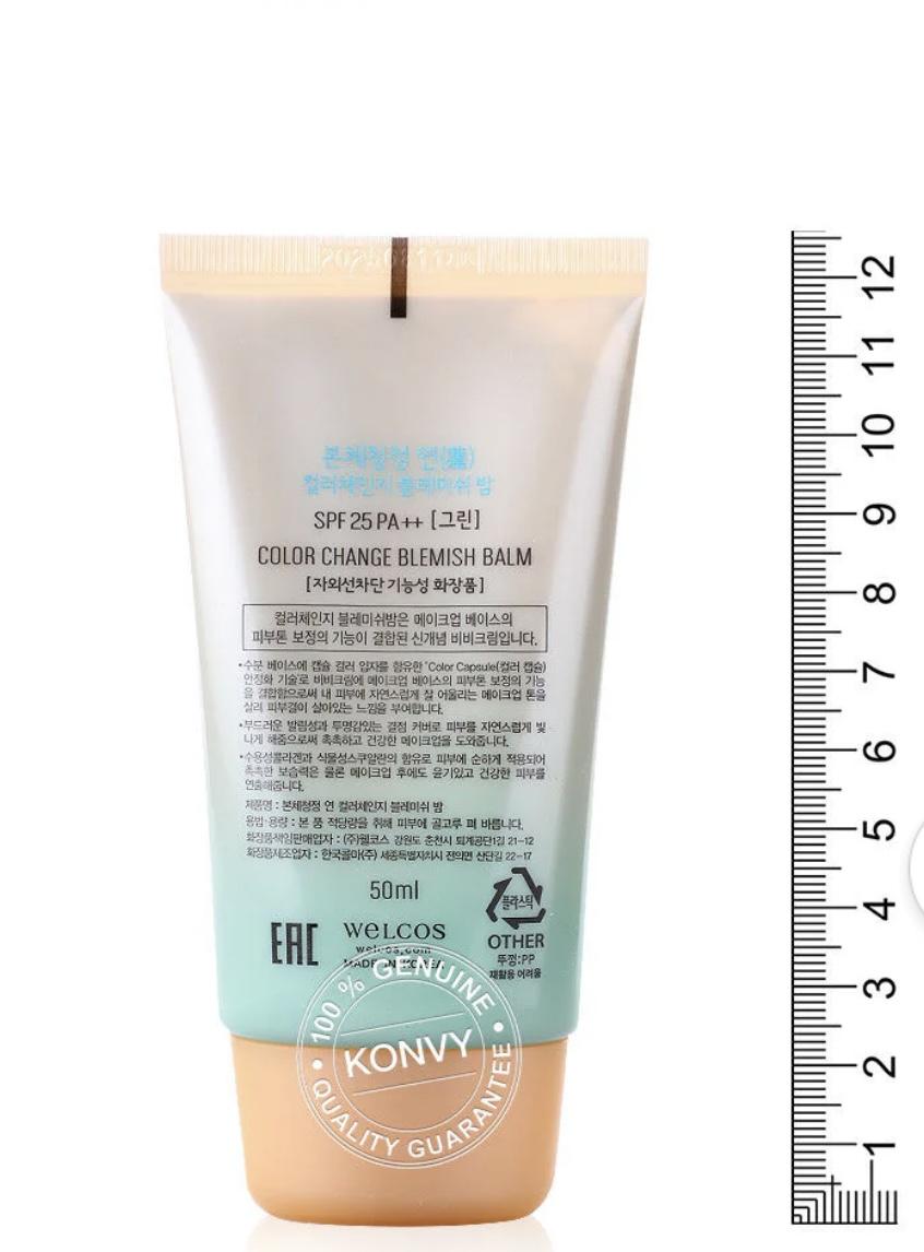 How to use: After your skincare routine, smooth Welcos Color Change BB Cream SPF25 PA++ evenly over your entire face.