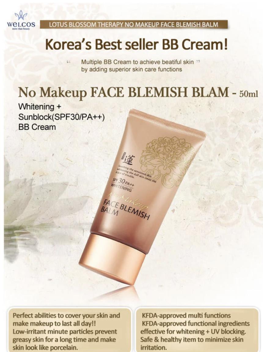 Welcos No Makeup Face BB Cream SPF30 50ml is a highly popular and well-received BB cream with excellent coverage and oil control. It provides all-day sun protection with whitening ingredients to brighten the complexion, promote a radiant, bouncy complexion, and control oiliness. It provides all-day sun protection. The cream provides smooth coverage and a blend of herbal ingredients to nourish the skin.