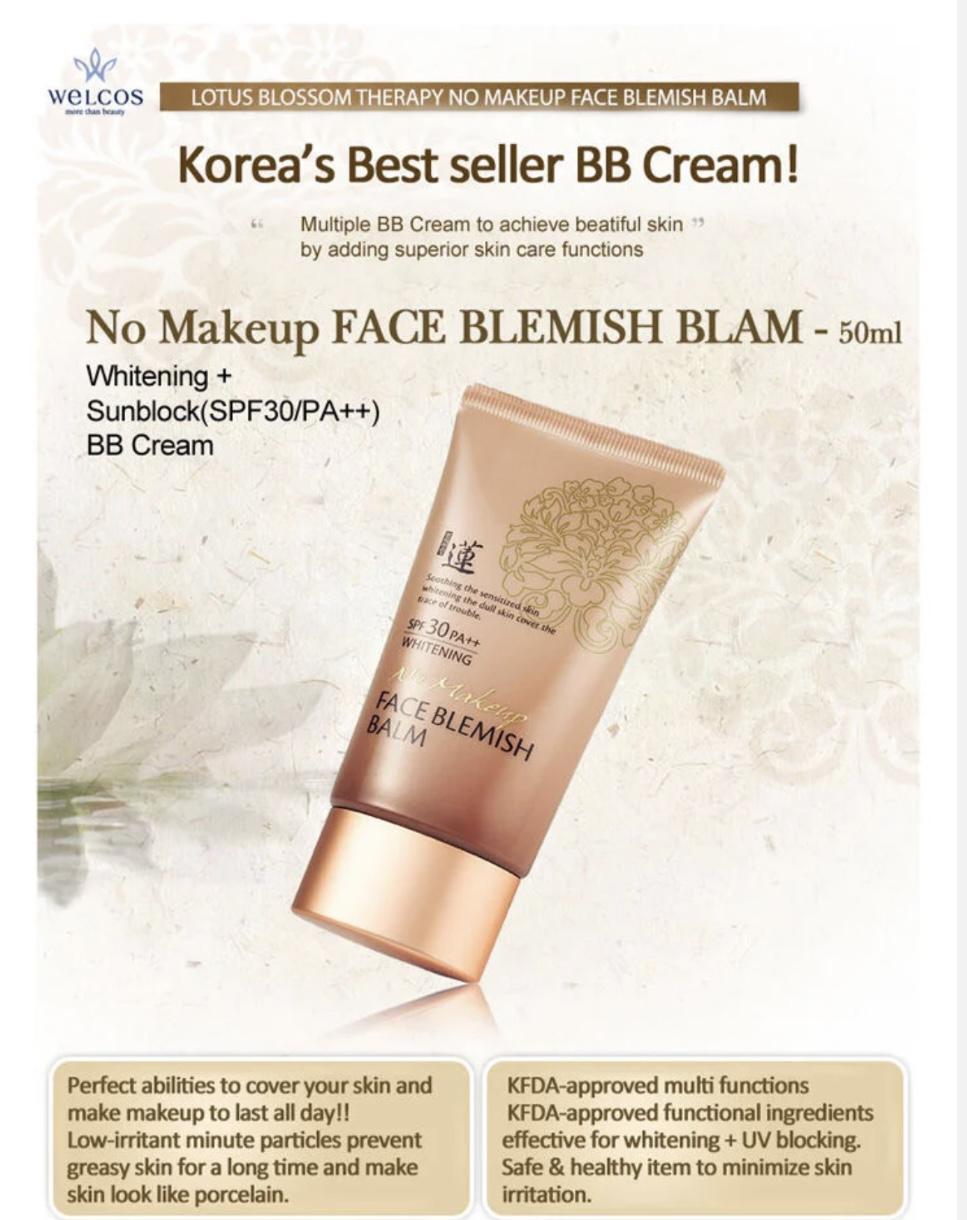 Welcos No Makeup Face BB Cream SPF30 50ml is a highly popular and well-received BB cream with excellent coverage and oil control. It provides all-day sun protection and whitening benefits, promoting a radiant, bouncy complexion. It also provides complete oil control. It provides all-day sun protection. The cream provides smooth coverage and a blend of herbal ingredients to nourish the skin.