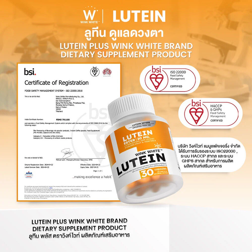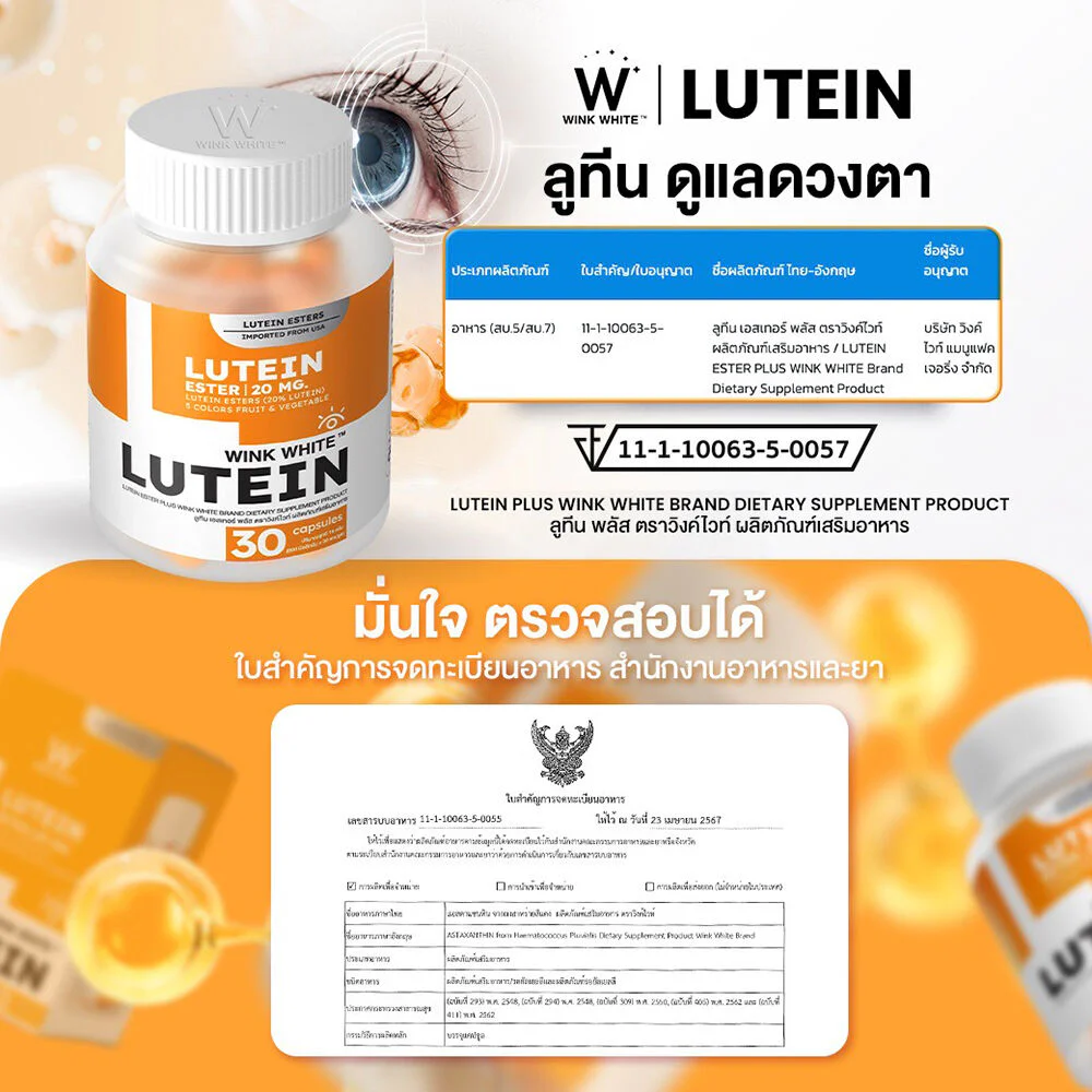 WinkWhite Lutein 30 Capsules Lutein dietary supplement concentrated formula 200mg. 30 capsules