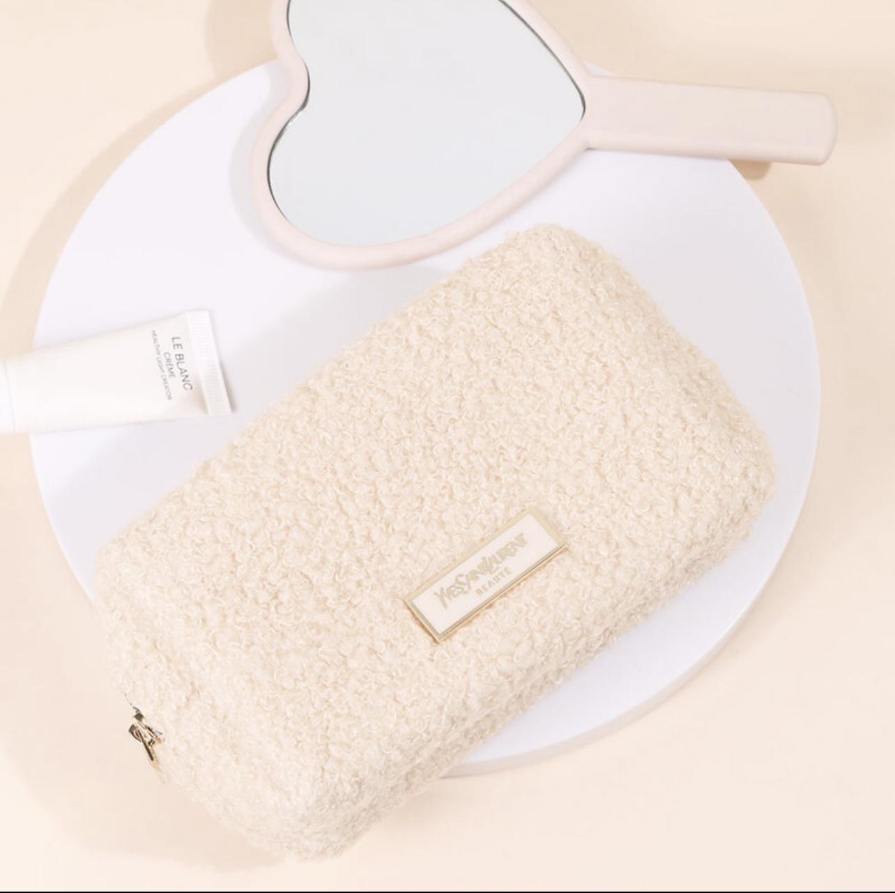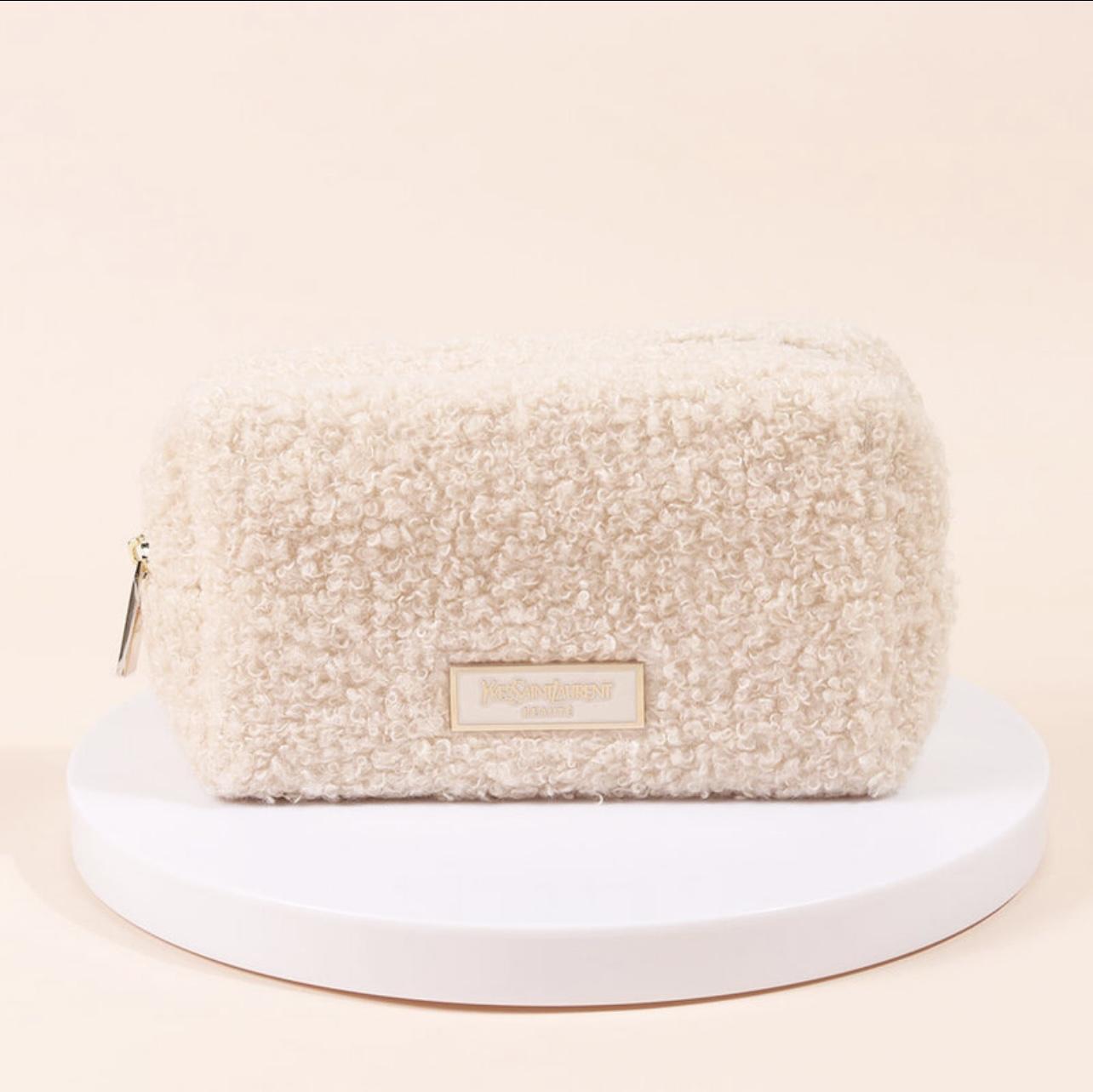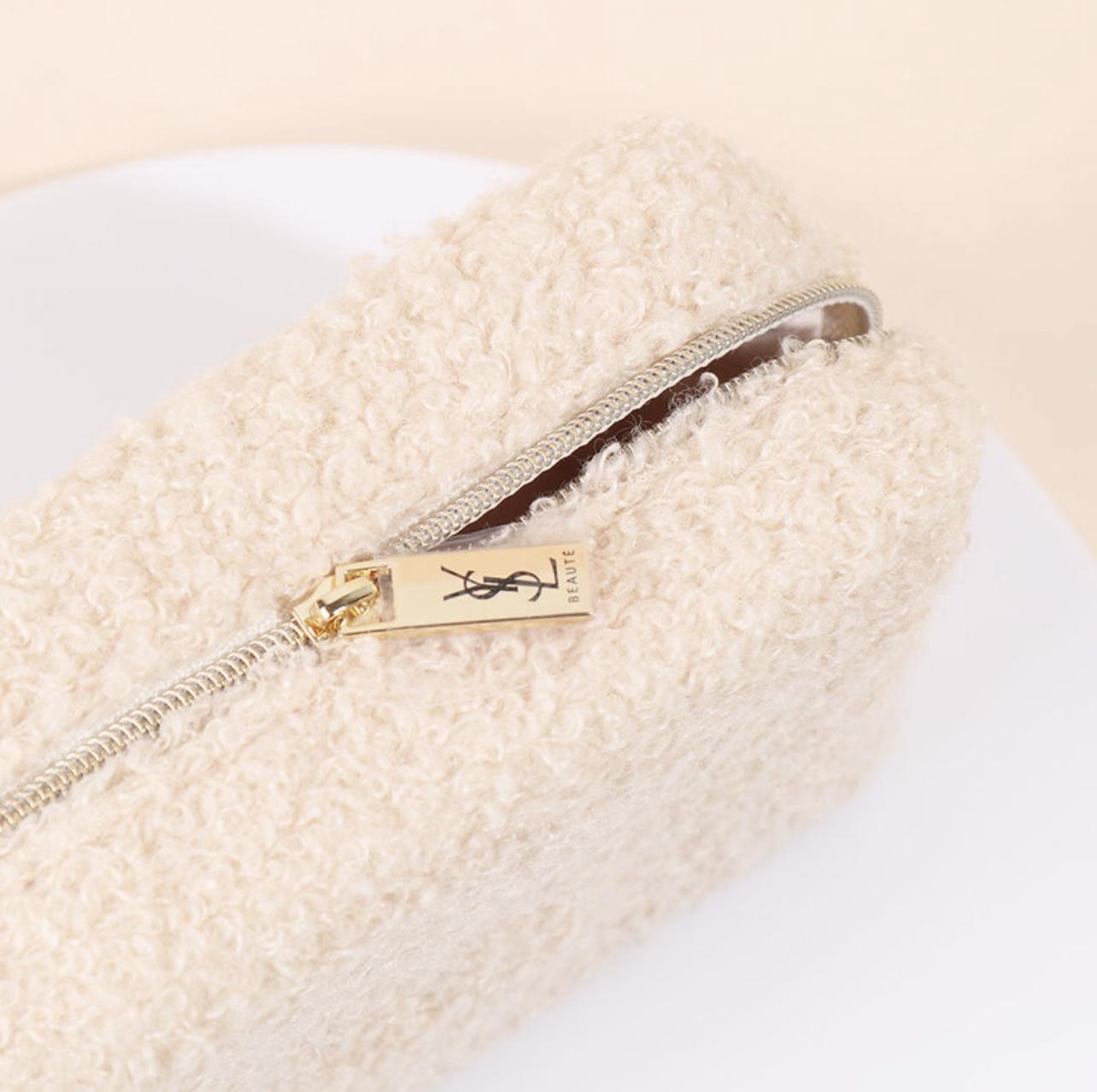 YSL Puffer Pouch #Beige: This beige cosmetic bag is made from high-quality materials and is meticulously sewn. It's durable, spacious, and easy to carry. It can be used for a variety of purposes.