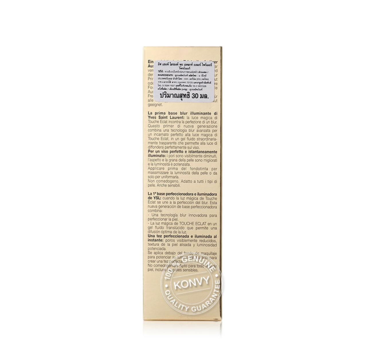 YSL Touche Eclat Blur Primer 30ml, the first light-diffusing primer from YSL. Where the magic of light meets the perfection of concealment. With advanced technology, it creates a flawless complexion. Touche Eclat's magic of light comes in a clear gel form, so it won't dull your complexion. Instantly flawless, radiant skin appears smoother and brighter. Use it before foundation to brighten your complexion, or wear it alone to showcase your complexion. It's non-comedogenic and suitable for all skin types, including sensitive skin.