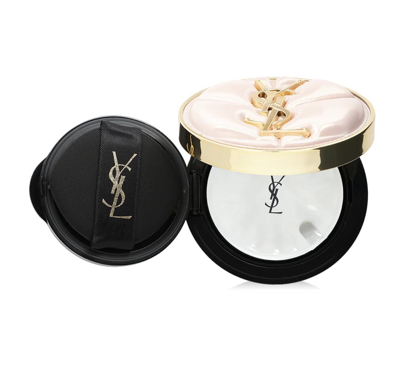 Use the puff to apply YSL Touche Eclat Glow-Pact Cushion and blend evenly over the face.